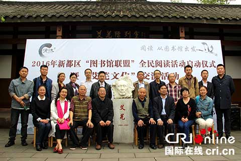 据国际在线四川频道报道(叶林):为深入开展全民阅读活动,倡导全民阅读、建设书香社会、引领读书风尚、引导更多的人多读书、读好书,进一步推进书香新都建设,在第21个“世界读书日”即将来临之际,为响应中国图书馆学会发出的“阅读,从图书馆出发”的号召,由成都市新都区图书馆、西南石油大学图书馆、成都医学院图书馆、四川音乐学院图书馆主办、新都区清流镇人民政府承办的“2016年成都市新都区“图书馆联盟”全民阅读活动启动仪式暨“艾芜文化”交流活动在新都区清流镇艾芜故居隆重举行。我馆毛立新副馆长,馆员凌宇飞、黄虓、张翰文参加了此次活动。